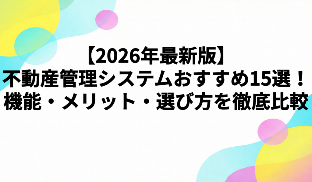 【2026年最新版】不動産管理システムおすすめ15選!機能・メリット・選び方を徹底比較