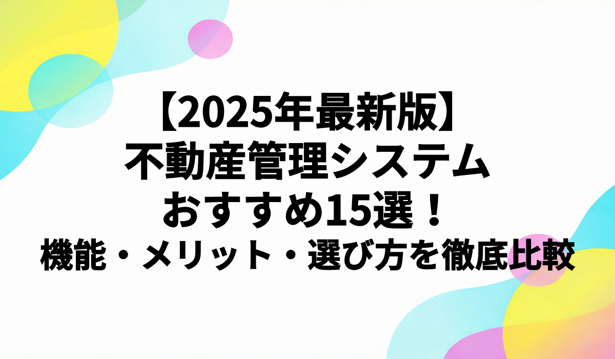 【2025年最新版】不動産管理システムおすすめ15選!機能・メリット・選び方を徹底比較