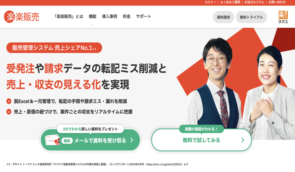 「楽楽販売」は、累計導入社数4,000社を超える実績を持つ、中堅・中小企業向けのクラウド型販売管理システムです。