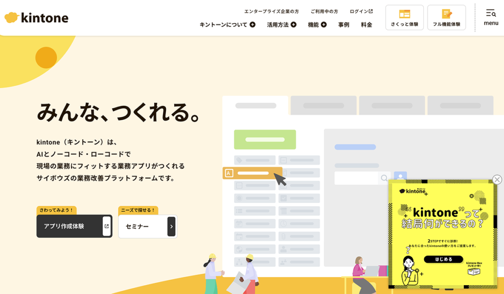サイボウズが提供する「kintone」は、ノーコードで業務アプリを自由に作成できるクラウドサービスです。