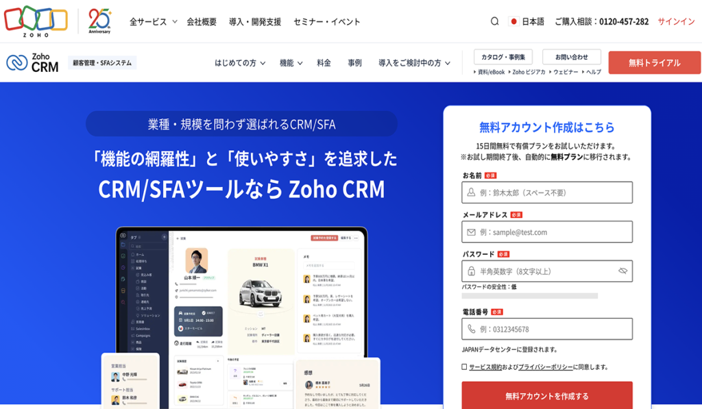 Zohoが提供する「Zoho CRM」は、顧客管理を中心とした販売活動を効率化するためのシステムです。