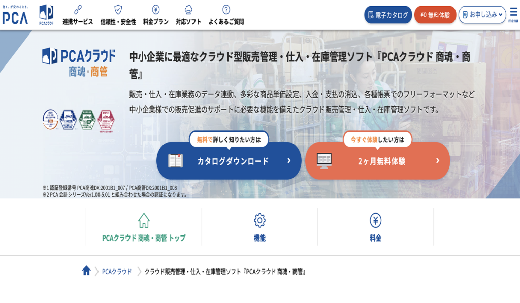 「PCA商魂・商管」は、ピー・シー・エーが提供する販売管理・仕入れ在庫管理システムです。