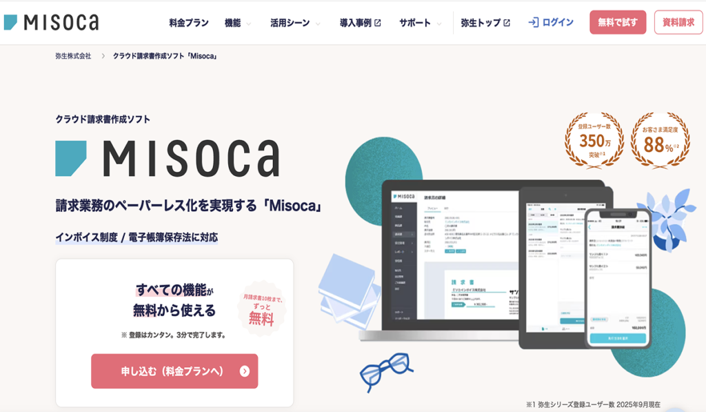 「Misoca」は、請求書作成・管理に特化したクラウドサービスですが、販売管理の一部として売上計上や入金管理にも活用できます。